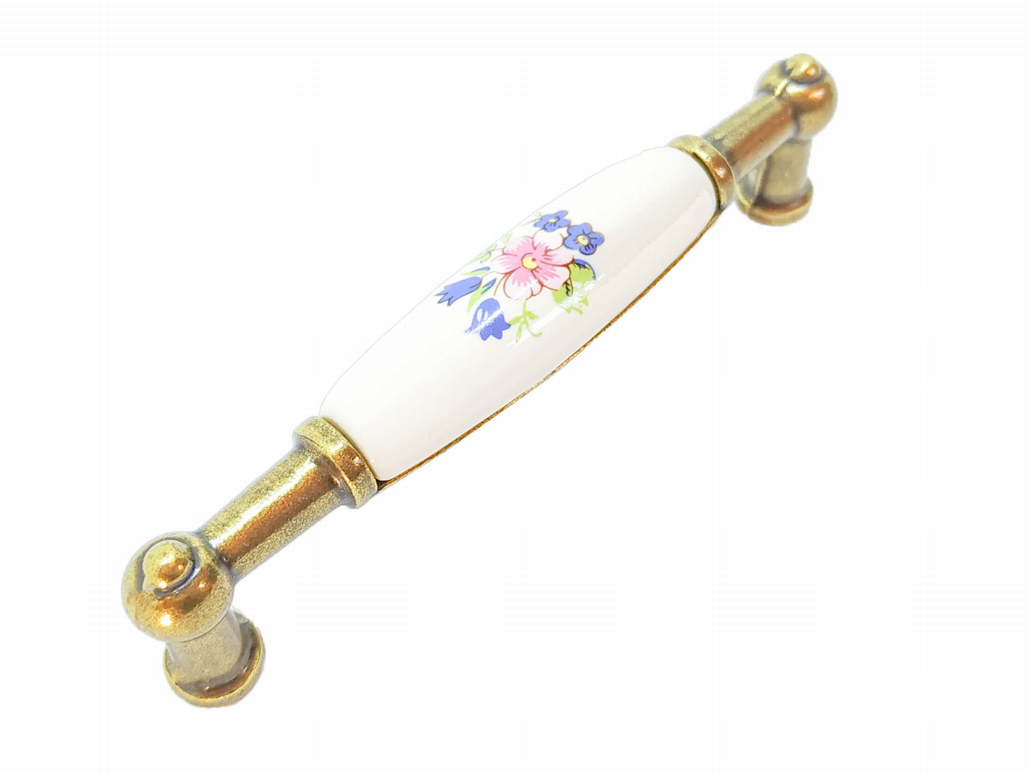 Uchwyt meblowy UP-21, stare złoto, niebieski kwiatek z rożowym, 96mm