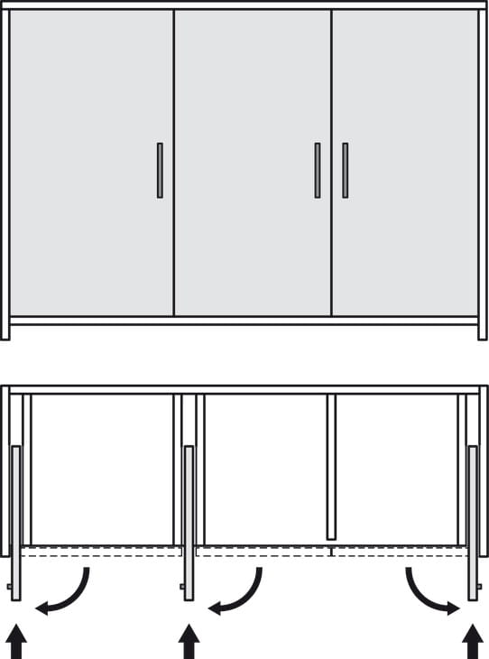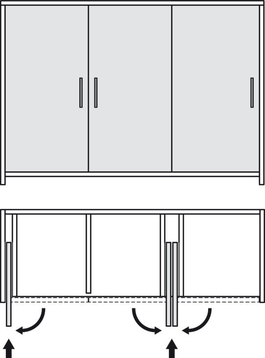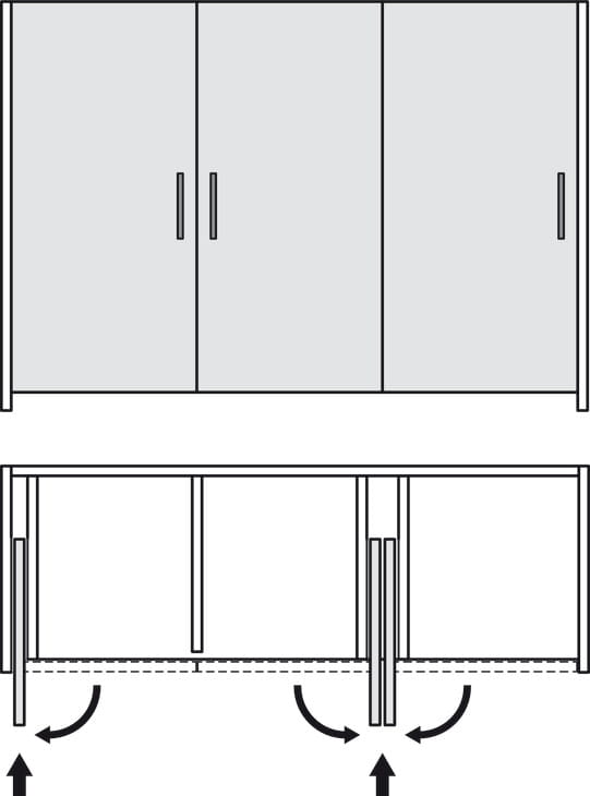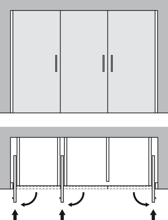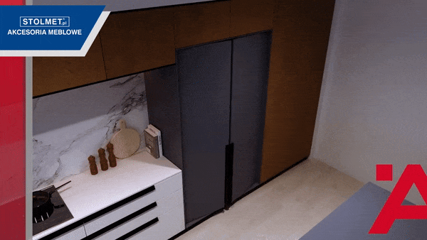 Sposób działania: Po otwarciu drzwi szafy, drzwi chowane są do jej boku. Idealne zastosowanie do mebli kuchennych i szaf w garderobie.