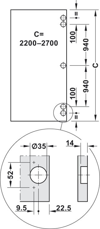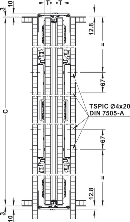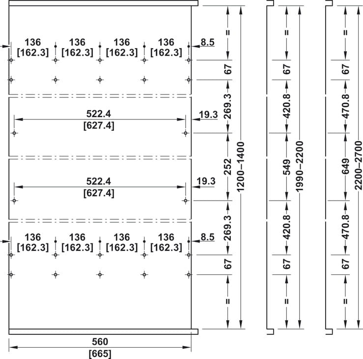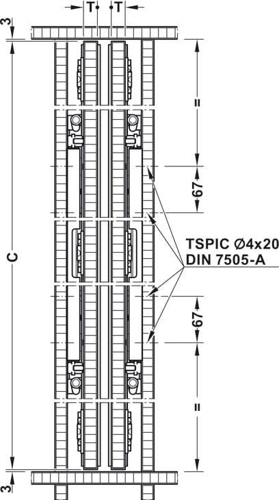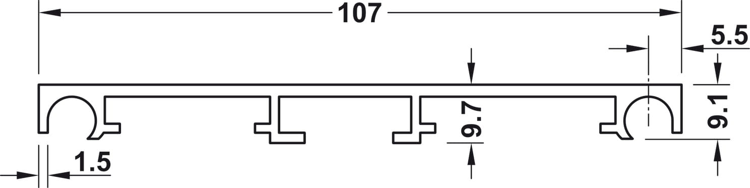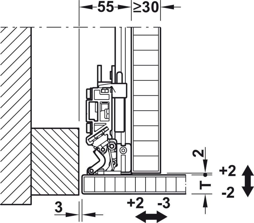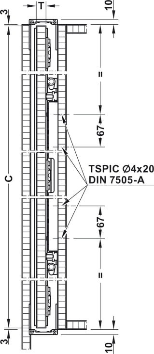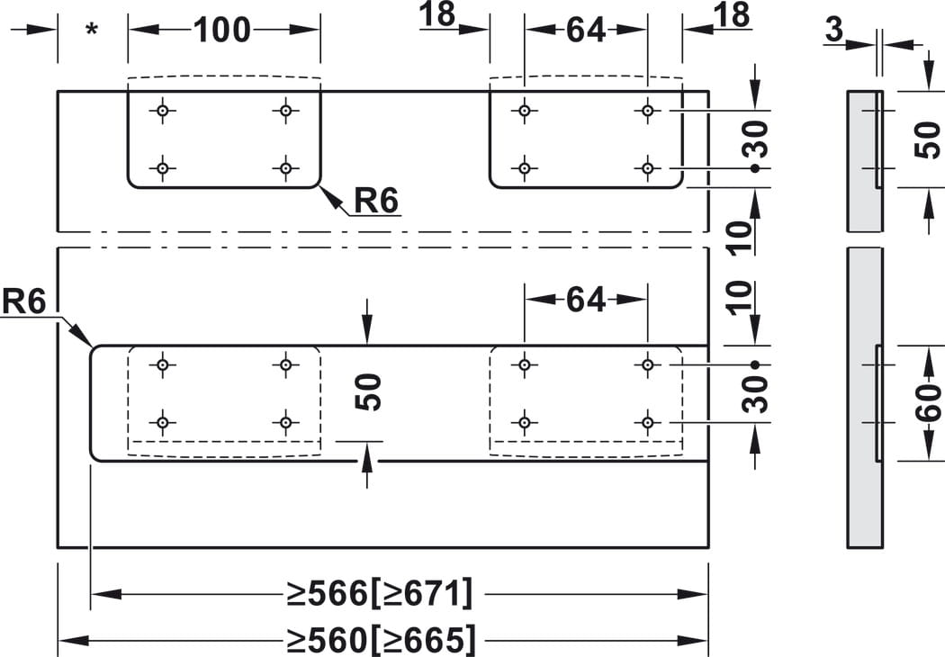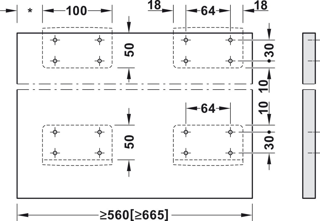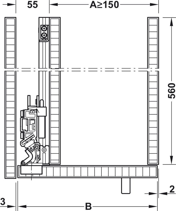 - Wskazówka do montażu: W konstrukcjach Infront musi istnieć możliwość zdemontowania ścianki bocznej w celu zamontowania okuć, np. ze złączem klinowym nr art. 261.30.117 w połączeniu z kątownikiem do ścianek tylnych nr art. 264.24.706.