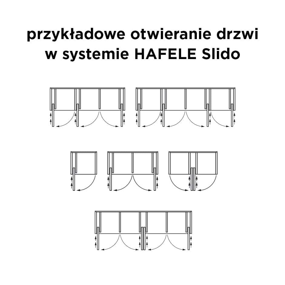 Drzwi chowane do ściany szafki, okucie Hafele Slido F-Park72 50A, z amortyzatorem, Infront/Vorfront