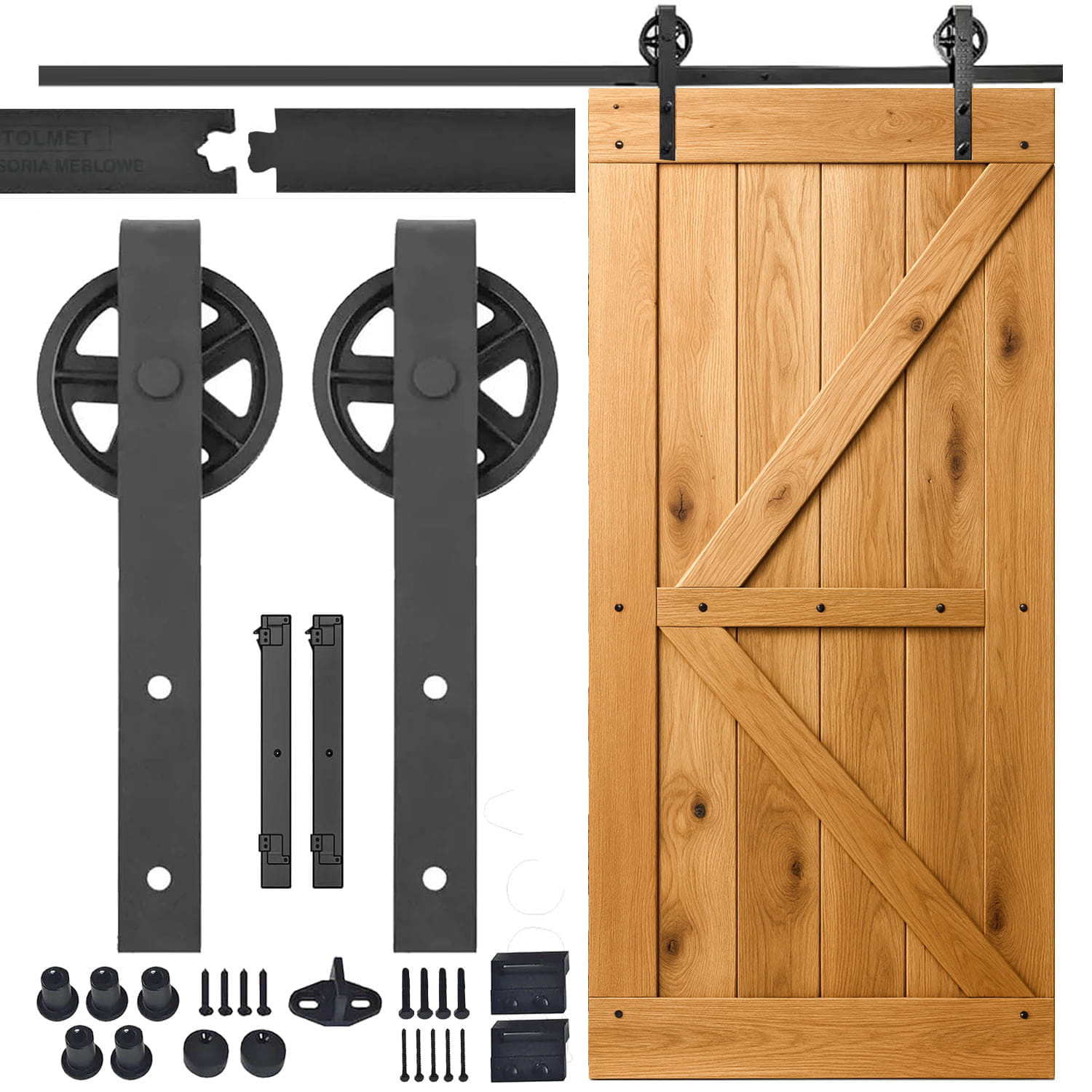 Drzwi przesuwne LOFT BARN DOOR duże kółko HM2009 + Spowalniacz, szyna 2m, na 1 drzwi