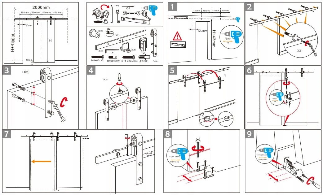 - Prowadnica górna 200 cm (tor jezdny) - 2 x 100 cm