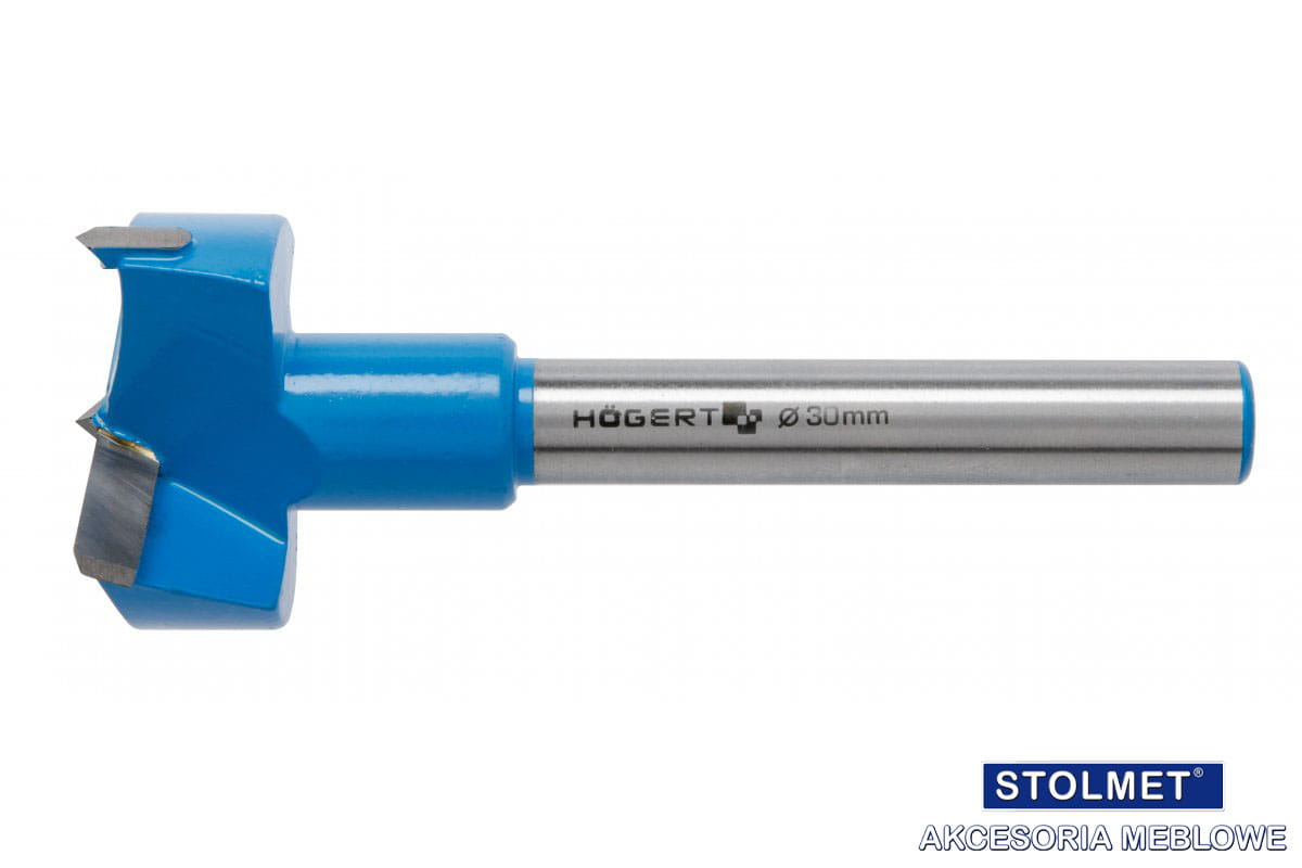 Wiertło do nawiercania otworów nieprzelotowych pod zawiasy w płytach wiórowych i innych materiałach drewno podobnych.