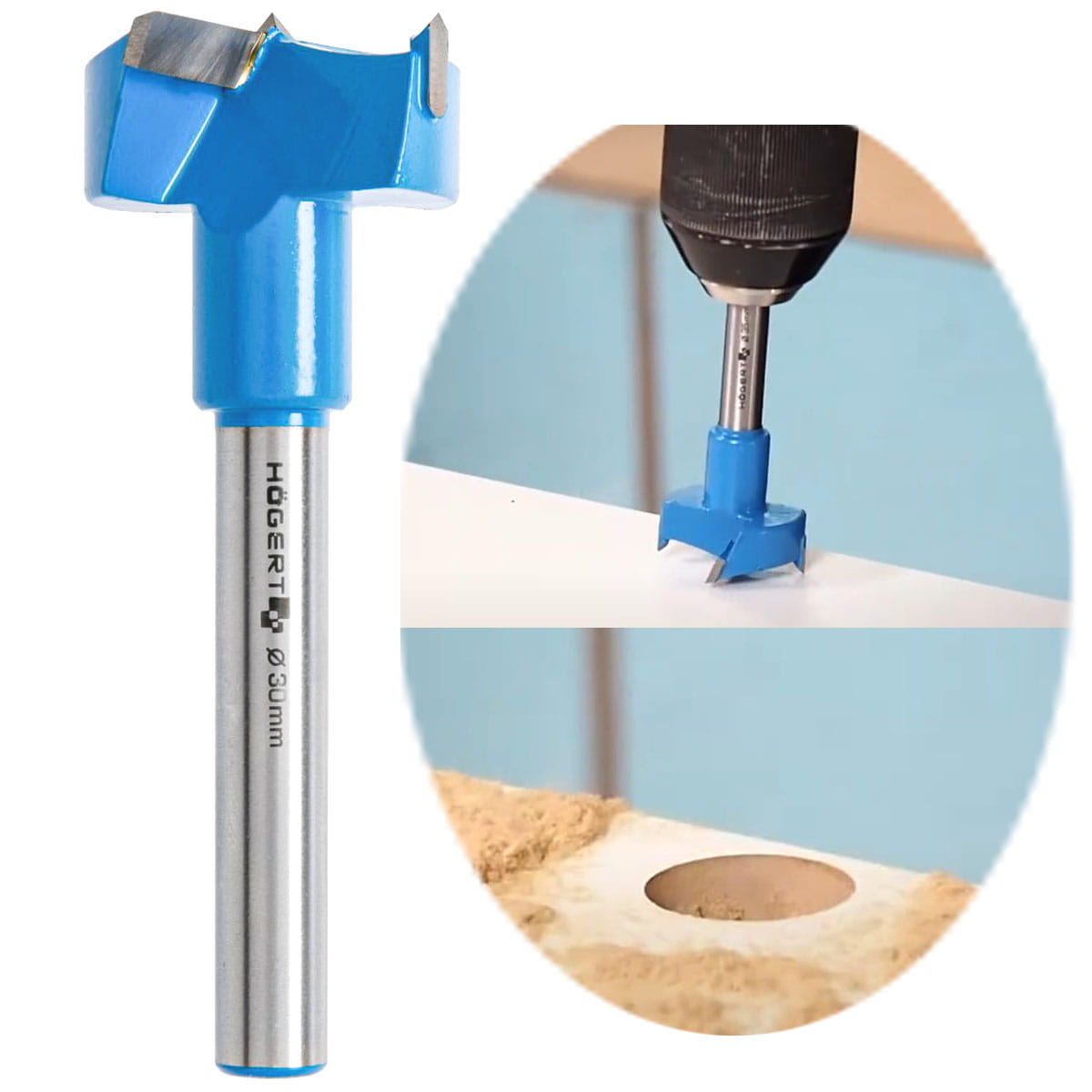 Wiertło do nawiercania otworów nieprzelotowych pod zawiasy w płytach wiórowych i innych materiałach drewno podobnych. Idealne