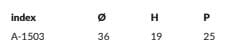 - gałka o średnicy 36 mm oraz wysokości 19 mm;