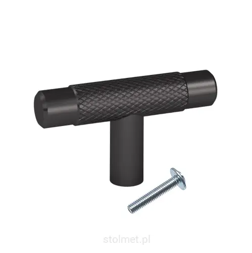 Gałka meblowa Vende, czarny mat, z prążkowanym chwytem