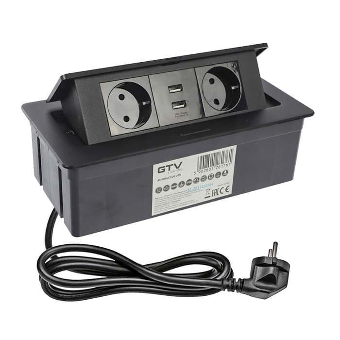 Gniazdo Przedłużacz SOFT biurkowy wpuszczany prostokątny 2 gniazda schuko + 2 x USB, 1,5m, czarny