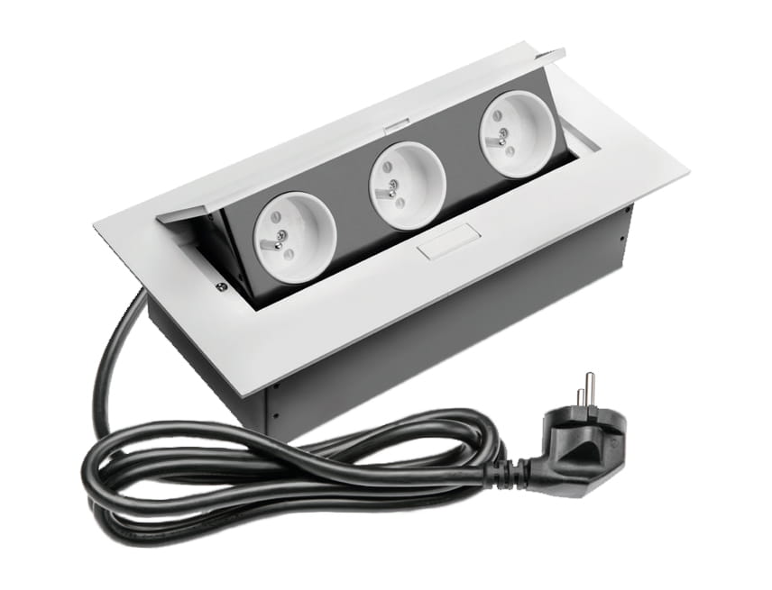 Gniazdo Przedłużacz biurkowy wpuszczany prostokątny 3 gniazda z bolcem, Biały