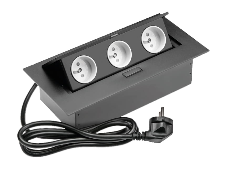Gniazdo Przedłużacz biurkowy wpuszczany prostokątny 3 gniazda z bolcem, Czarny