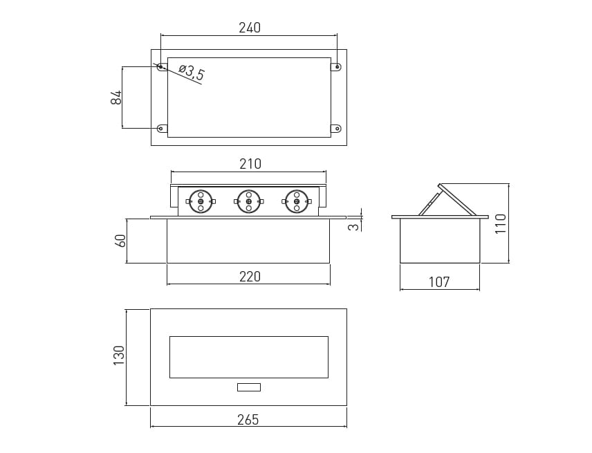 Przedłużacz biurkowy wpuszczany prostokątny 3 gniazda z bolcem