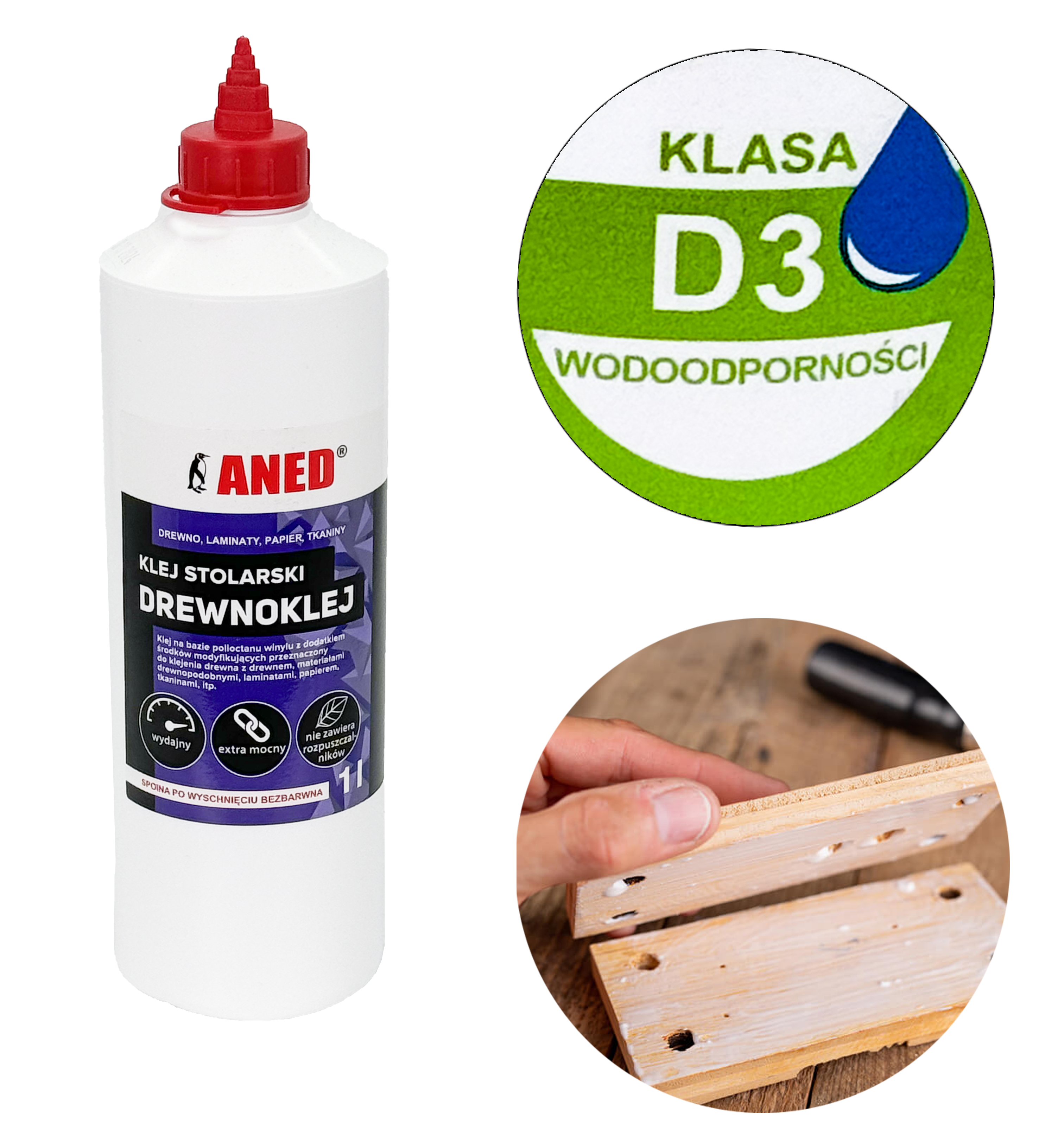 Drewnoklej to wysokiej jakości klej stolarski przeznaczony do trwałego łączenia elementów drewnianych, laminatu, papieru i tkanin. Jego formuła została opracowana z myślą o profesjonalnych pracach stolarskich, a także projektach hobbystycznych i DIY, zapewniając doskonałą przyczepność oraz wytrzymałość połączeń.
