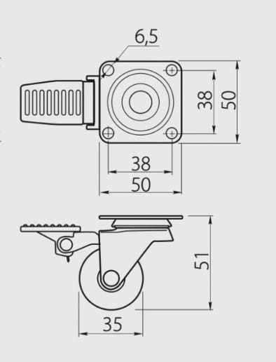 Kółko meblowe KMA z gumową rolką fi 35 mm z hamulcem