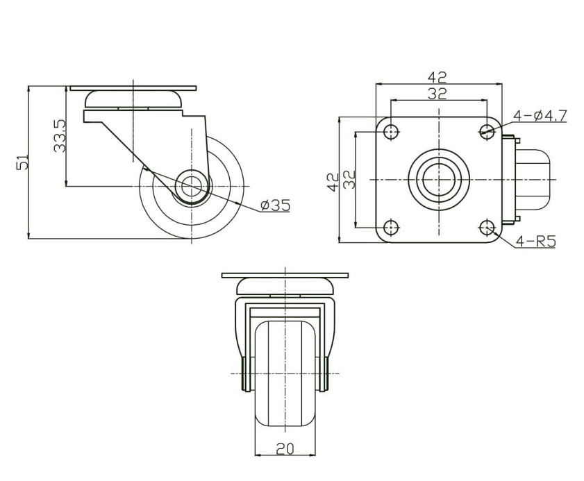 Kółko meblowe gumowe z gumą ogumowane KM fi 35 mm, 30kg