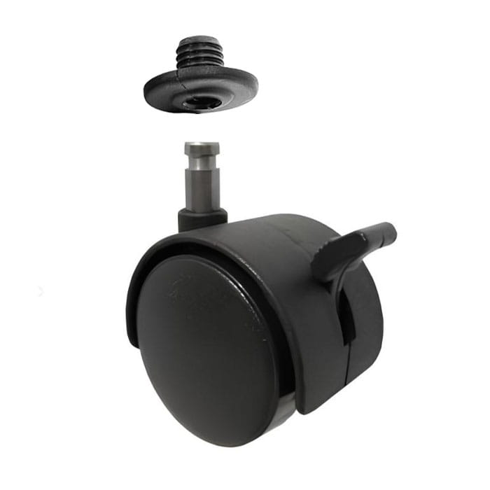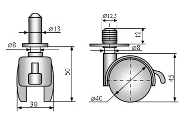 Kółko meblowe obrotowe fi40 z hamulcem, trzpień fi8 + mufa