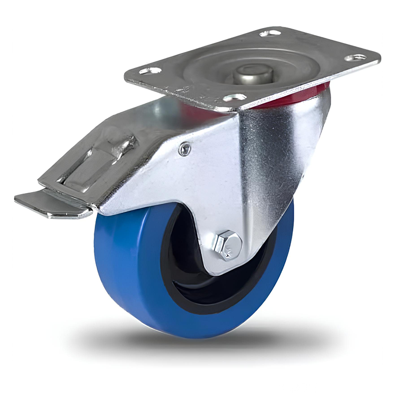 tworzywowe o bieżniku z niebieskiej elastycznej gumy na łożysku igiełkowym. Zestawy przeznaczone do skrzyń transportowych oraz innych zastosowań. Wysoka odporność na zużycie i rozdarcia. Nadaje się do zastosowań wewnętrznych i zewnętrznych. Nie pozostawia śladów na podłożu.