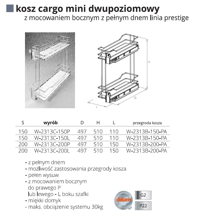 Kosz CARGO mini dwupoziomowy linia prestige ![]()