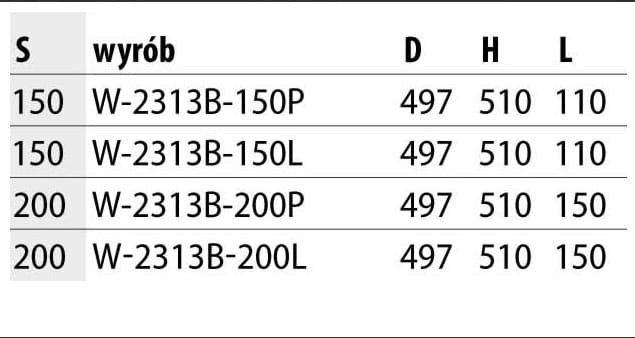 | Szerokość szafki | 150 mm |