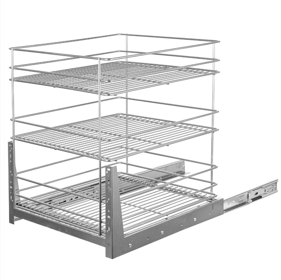 Kosz Cargo 3 półki, do szafki 60 cm, Pełny wysuw, Samodociąg, P22 Srebrny