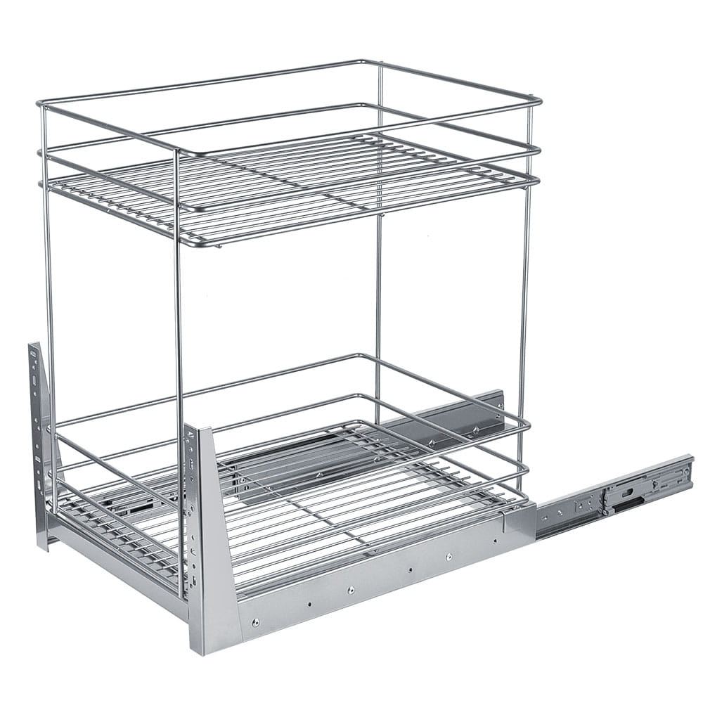 Kosz Cargo 400 mm, 2 półki, Pełny wysuw, Samodociąg, P22 Srebrny