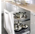 Kosz Cargo do szafki o szerokości zewnętrznej 60cm. Grube pokrycie powłoki zabezpiecza kosz przed korozją i izoluje przed kontaktem z żywnością. Przednie mocowanie frontu powoduje, że jego montaż oraz ustawienie pozostaje dziecinnie prostym zadaniem.
