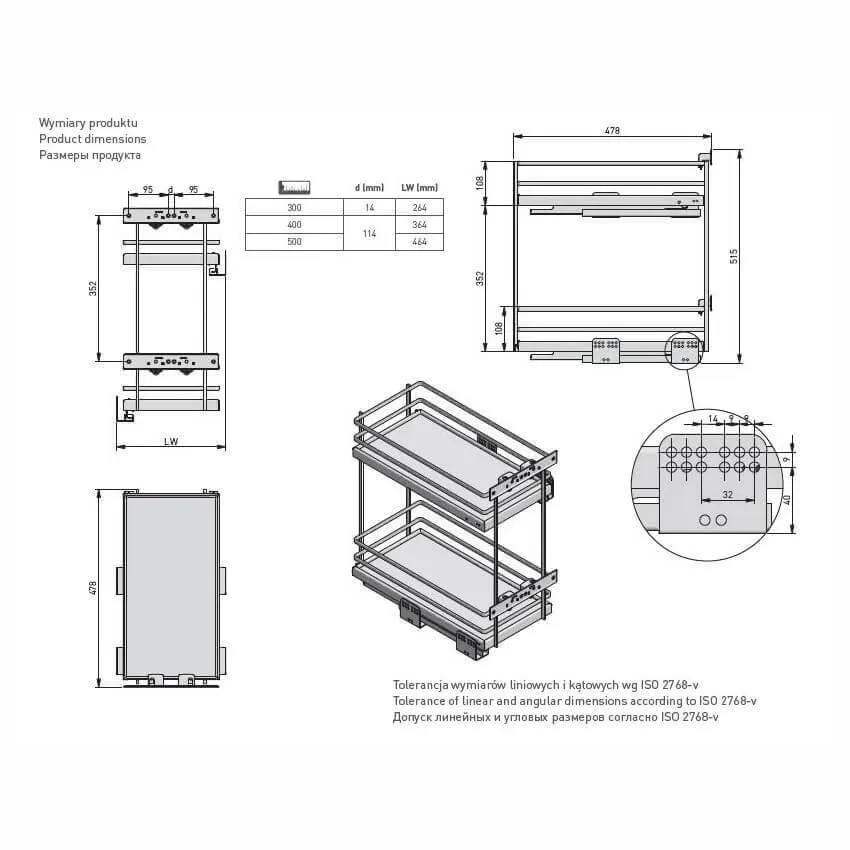 MOVIX PRO, 2 półki, Pełny wysuw, Cichy domyk