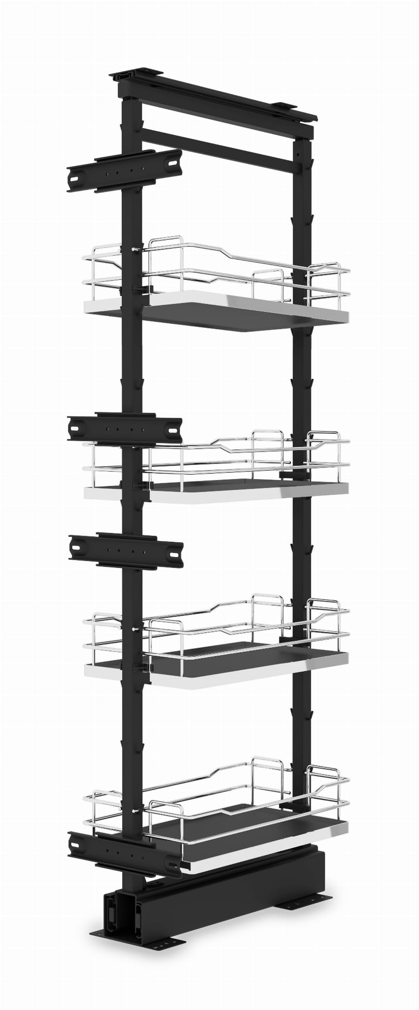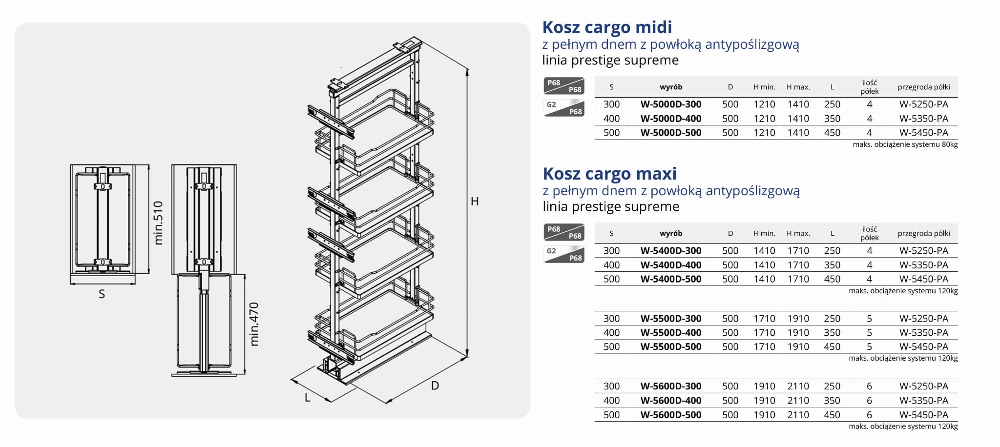 Kosz cargo maxi to świetne i nowoczesne rozwiązanie aby w niezwykle funkcjonalny sposób zagospodarować miejsce wewnątrz zabudowy meblowej. 4 półki i udźwig całkowity wynoszący aż 120 kg pozwala na swobodne umieszczanie w nim nawet ciężkich przedmiotów.