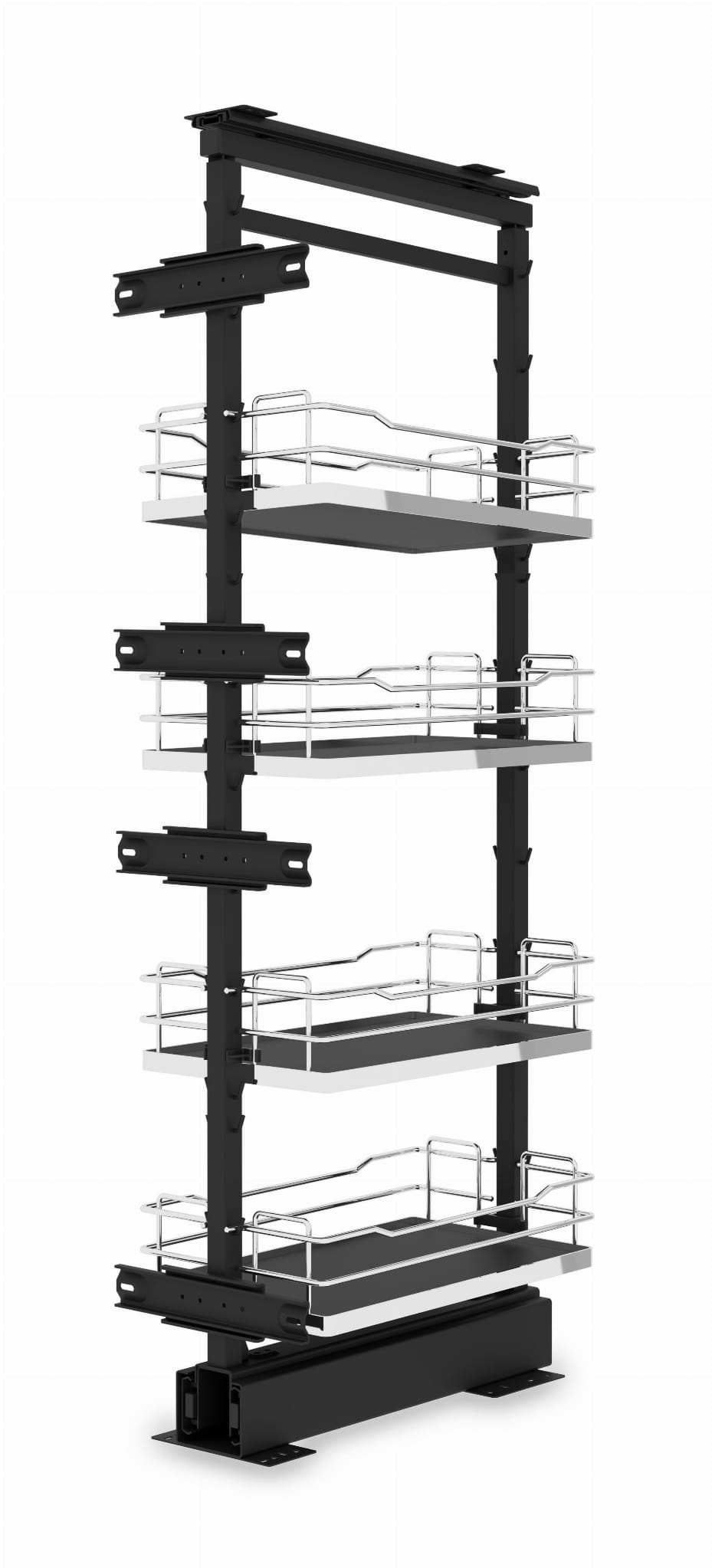 Kosz Cargo Midi, 400 mm, 4 półki, pełne dno, pełny wysuw, cichy domyk, antracyt + chrom