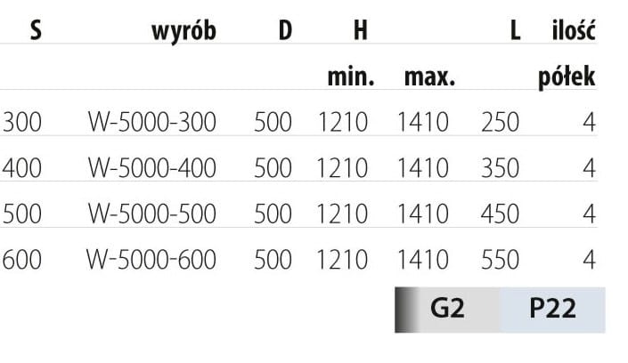 | Ilość półek | 4 półki |
