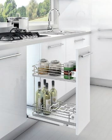 Kosze Cargo Podblatowe oparte na prowadnicach Sige pozwolą na świetne zagospodarowanie przestrzenią wewnątrz szafki. Eleganckie, chromowe wykończenie doda prestigu Państwa meblom kuchennym. Dzięki swojej konstrukcji, kosze wytrzymują nacisk aż 40kg dzięki czemu bez problemu można umieszczać w cargu nawet ciężkie przedmioty. Funkcja cichego domyku wyłapuje zamykający się kosz i domyka go do korpusu.