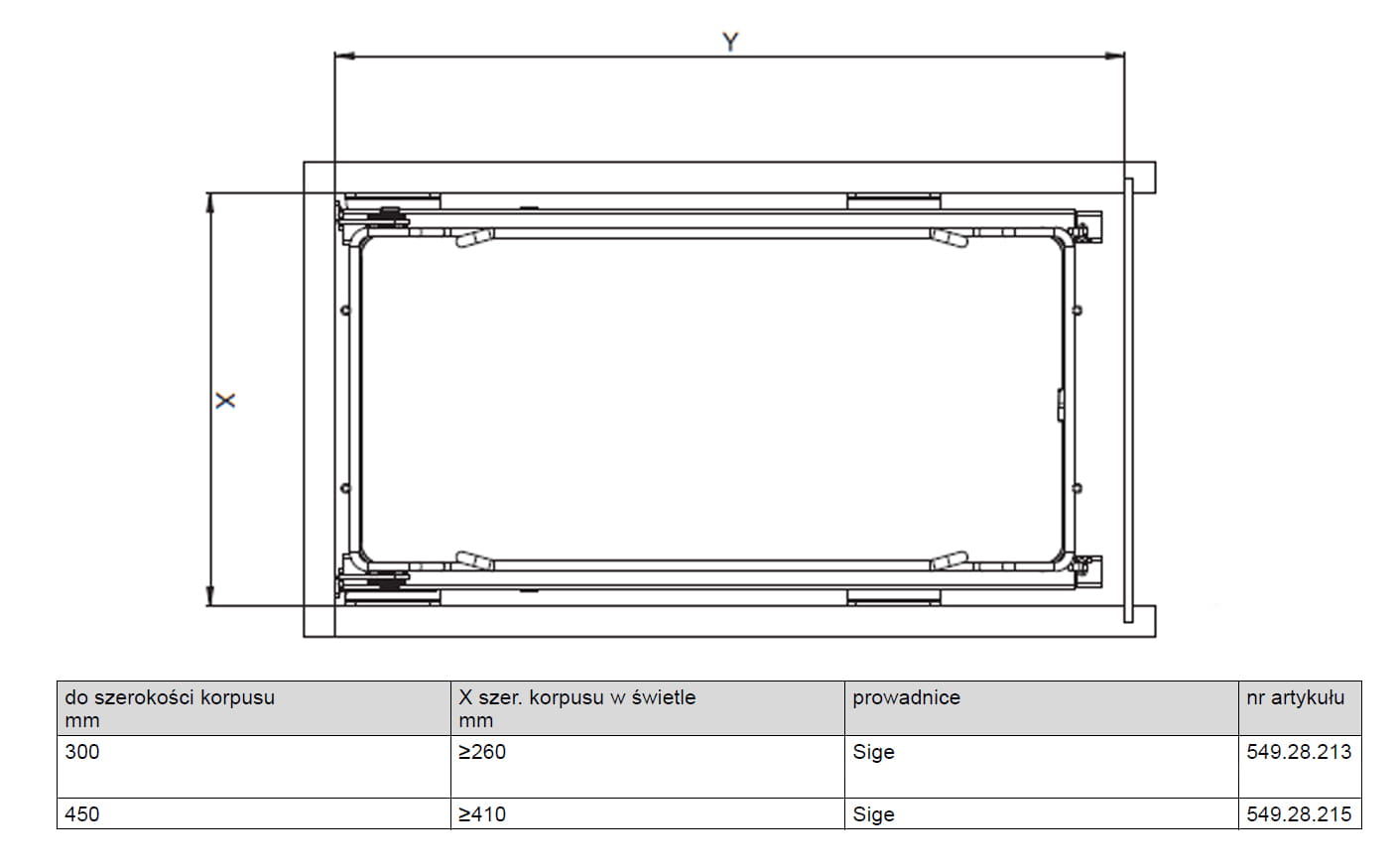 - Głębokość korpusu w świetle: Y ≥500 mm