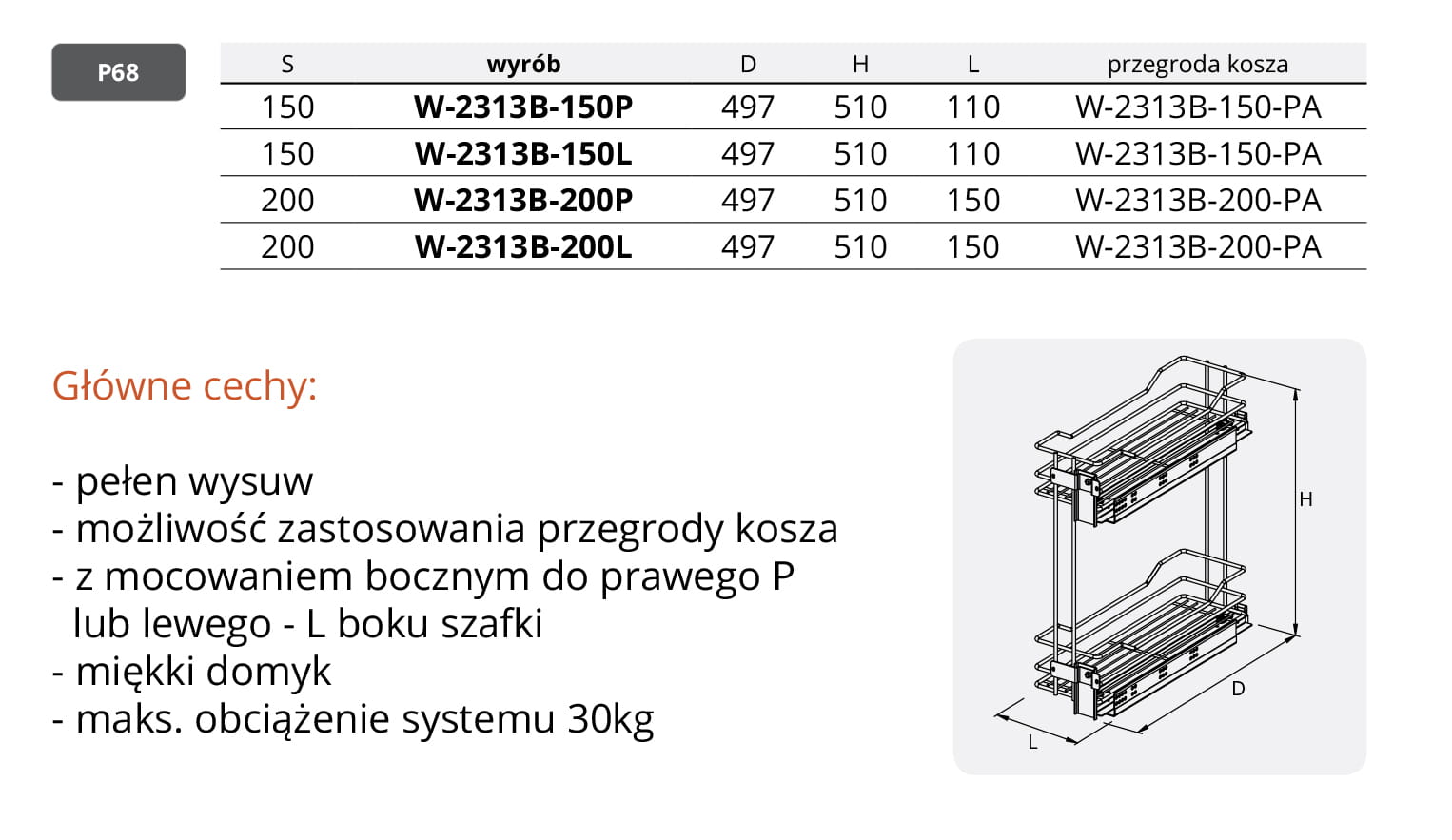 Nowe, gustowne pokrycie w kolorze antracytu - P68 - doda Państwa meblom elegancji i sprawi, że wyróżnią się one na tle innych systemów koszy.