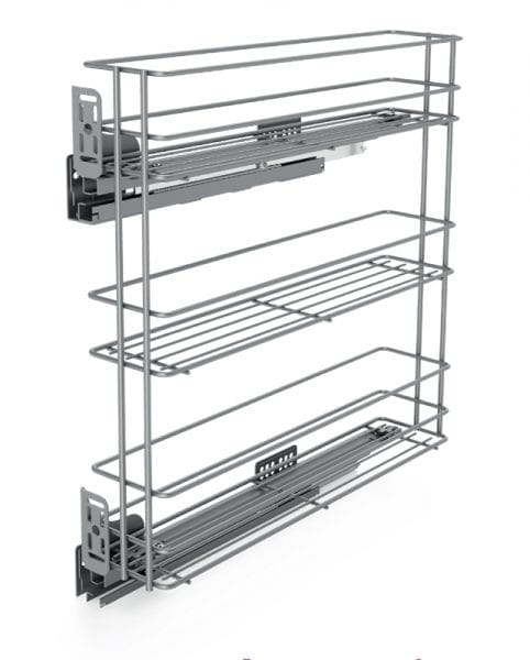 Kosz Cargo boczny prawy, regulacja 3D, 200 mm, 3 półki, Cichy domyk, Srebrny