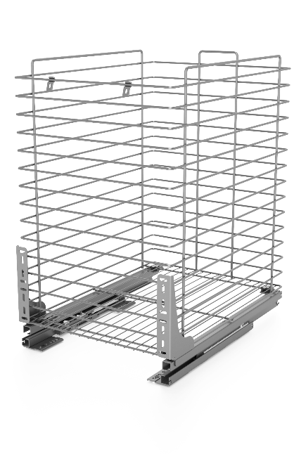 Kosz Cargo do szafki o szerokości zewnętrznej 40 cm. Grube pokrycie powłoki zabezpiecza kosz przed korozją i izoluje przed kontaktem z żywnością. Przednie mocowanie frontu powoduje, że montaż i jego ustawienie pozostaje niezwykle proste. Dodatkowa regulacja w 3 płaszczyznach pozwala na szybkie dopasowanie frontu (regulacja położenia w: Wysokości, szerokości oraz kąta nachylenia)