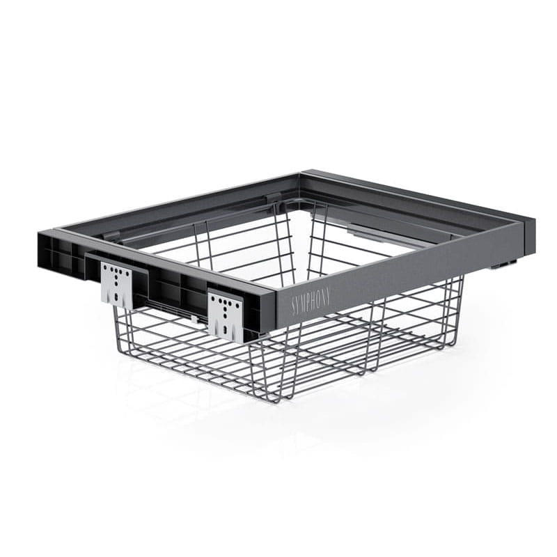 Kosz druciany do garderoby do szafki 60 cm, cichy domyk, pełny wysuw, Antracyt