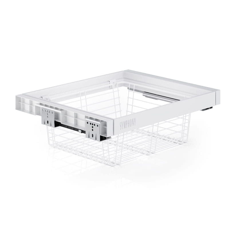 Kosz druciany do garderoby do szafki 60 cm, cichy domyk, pełny wysuw, Biały