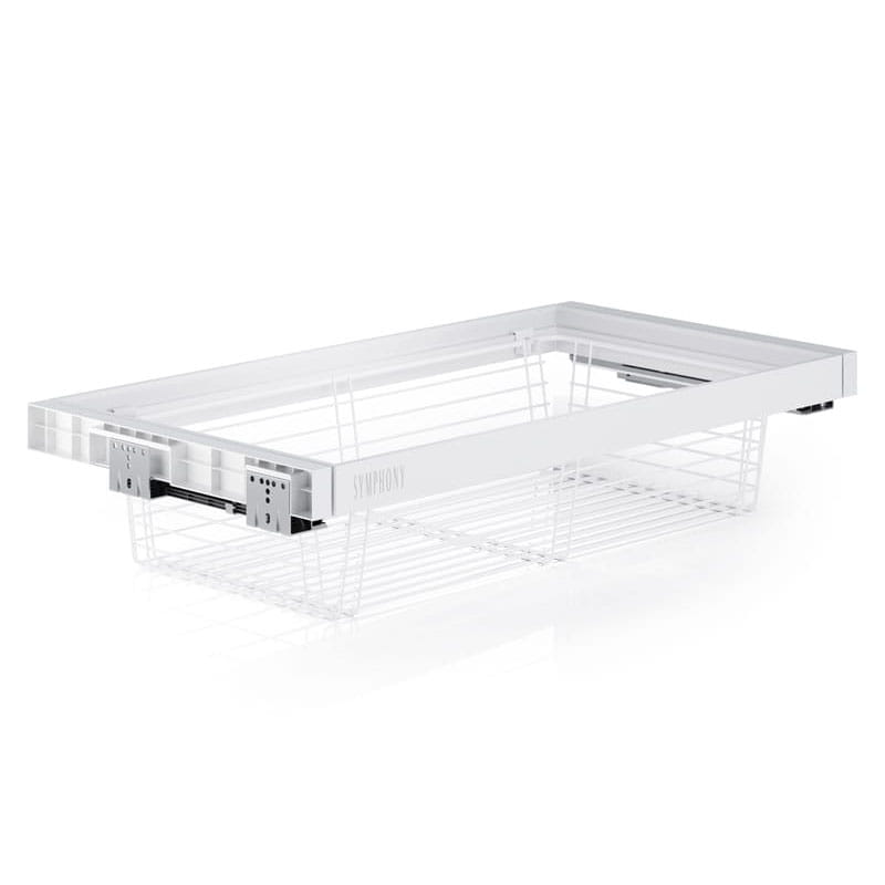 Kosz druciany do garderoby do szafki 90 cm, cichy domyk, pełny wysuw, Biały