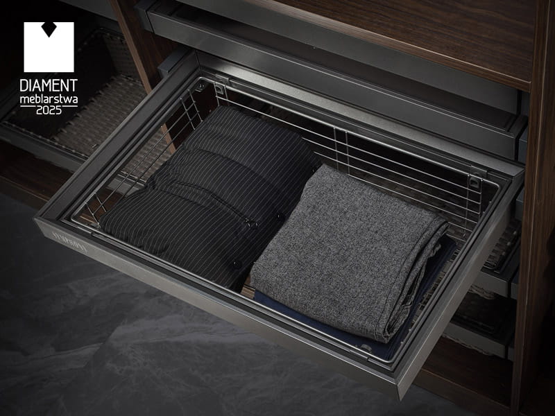 Szuflada sprawdzi się idealnie zarówno w szafkach kuchennych jak i w garderobie. Za sprawą pełnego wysuwu gwarantuje nam pełny dostęp do przechowywanych na niej rzeczy.