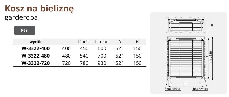 Elegancki kosz został dostosowany do praktycznego przechowywania bielizny i odzieży. Prowadnica łożyskowana z pełnym wysuwem gwarantuje łatwy dostęp do całej długości kosza oraz jej wieloletnie działanie. Wykonany w kolorze antracytu znakomicie realizuje nowoczesne założenia stylistyczne branży meblarskiej.