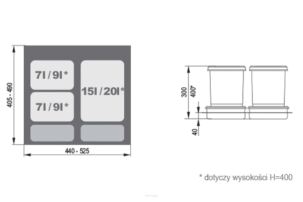 - Wkłady 1 x 20l + 2 x 9l + 2 x pojemnik