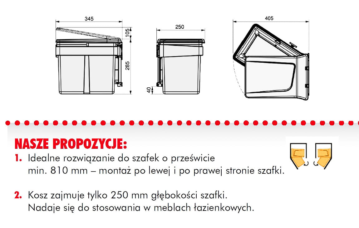 - kosz uniwersalny do szafek od 450 mm szerokości korpusu