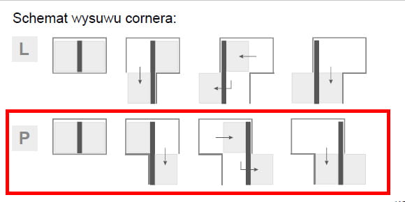 | Sposób wysuwania kosza | W prawo |