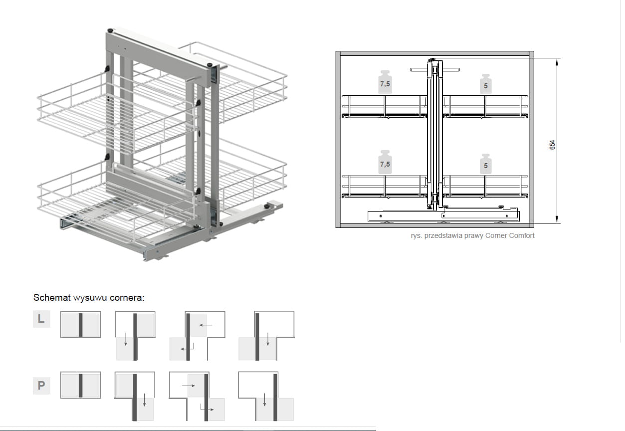 Kosz narożny to świetne i nowoczesne rozwiązanie aby w niezwykle funkcjonalny sposób zagospodarować miejsce wewnątrz szafki narożnej. Dzięki specjalnej budowie z szafki możemy wysunąć cały kosz który oparty na prowadnicach pełnego wysuwu gwarantuje swobodny dostęp do całej przestrzeni wewnątrz szafki.