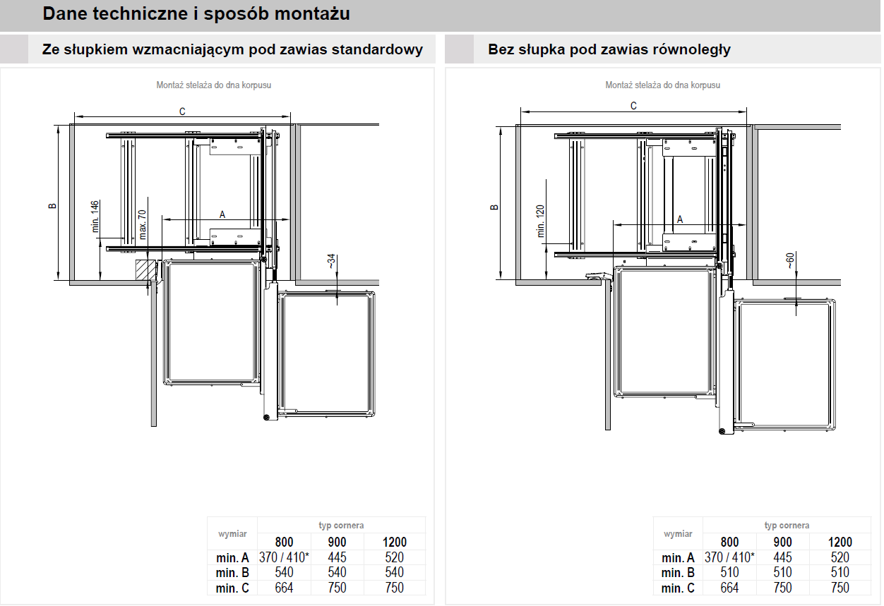 - mocowanie frontu w trzech płaszczyznach