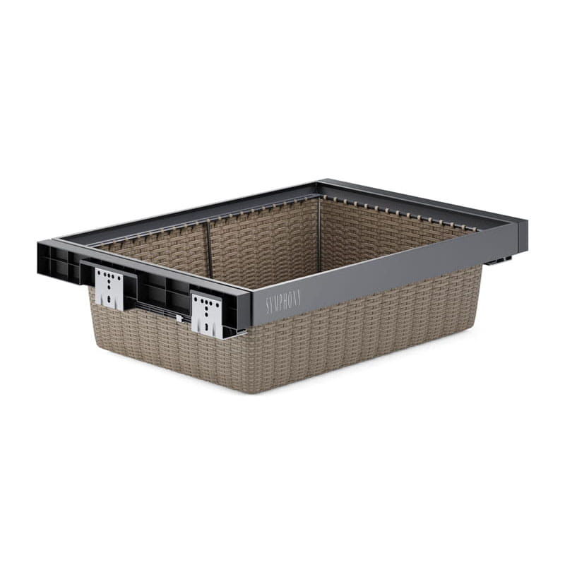 Kosz rattanowy do garderoby do szafki 70 cm, cichy domyk, pełny wysuw, Antracyt