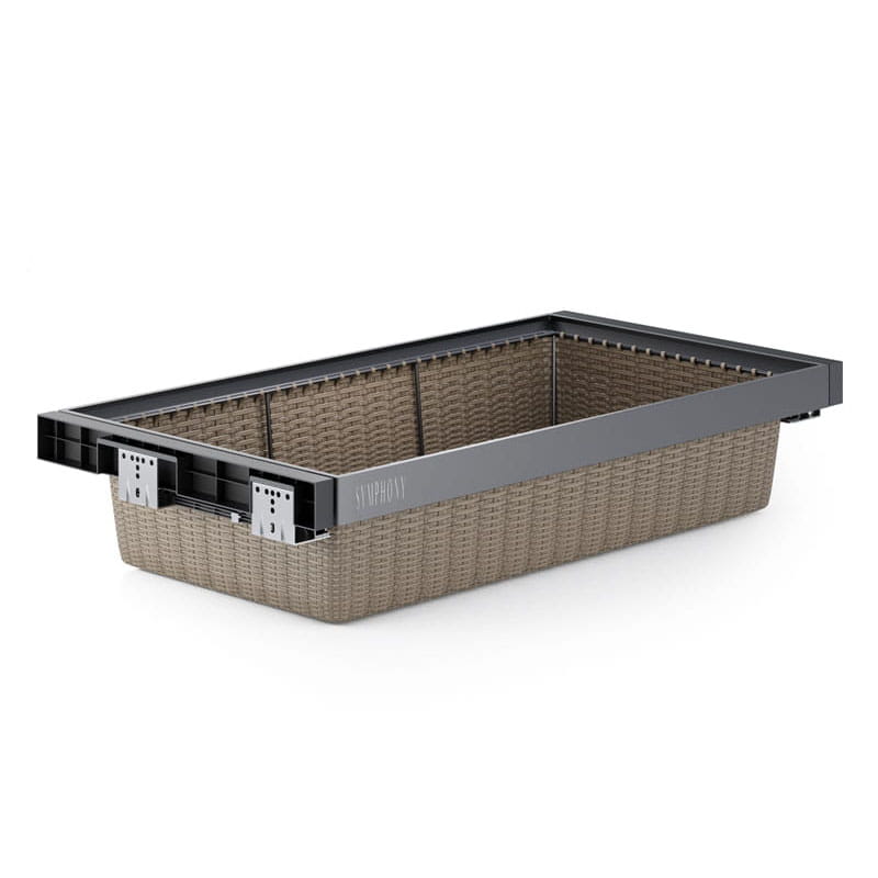 Kosz rattanowy do garderoby do szafki 90 cm, cichy domyk, pełny wysuw, Antracyt