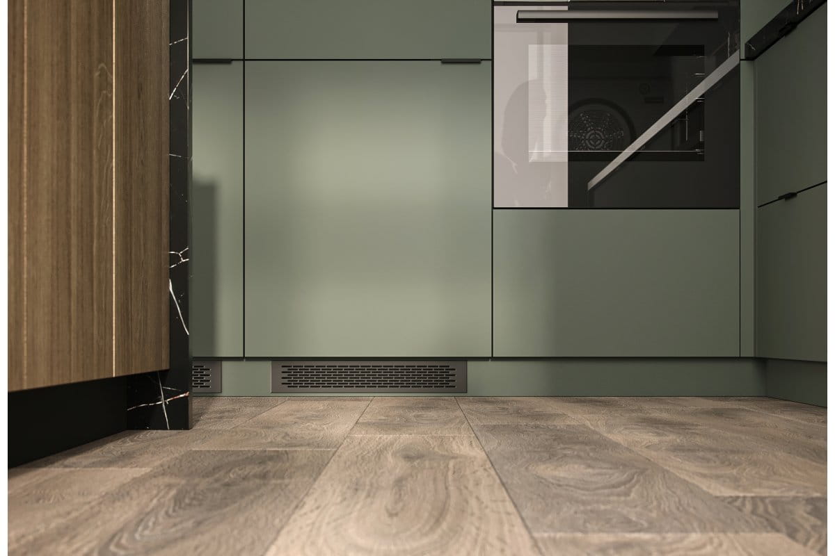 Aluminiowa kratka wentylacyjna. Do zamontowania w meblach z zabudowanym piekarnikiem lub lodówką, drzwiach i kominkach, a także ścianach i kanałach wentylacyjnych. Umożliwia łatwą cyrkulację powietrza w zamkniętych pomieszczeniach.