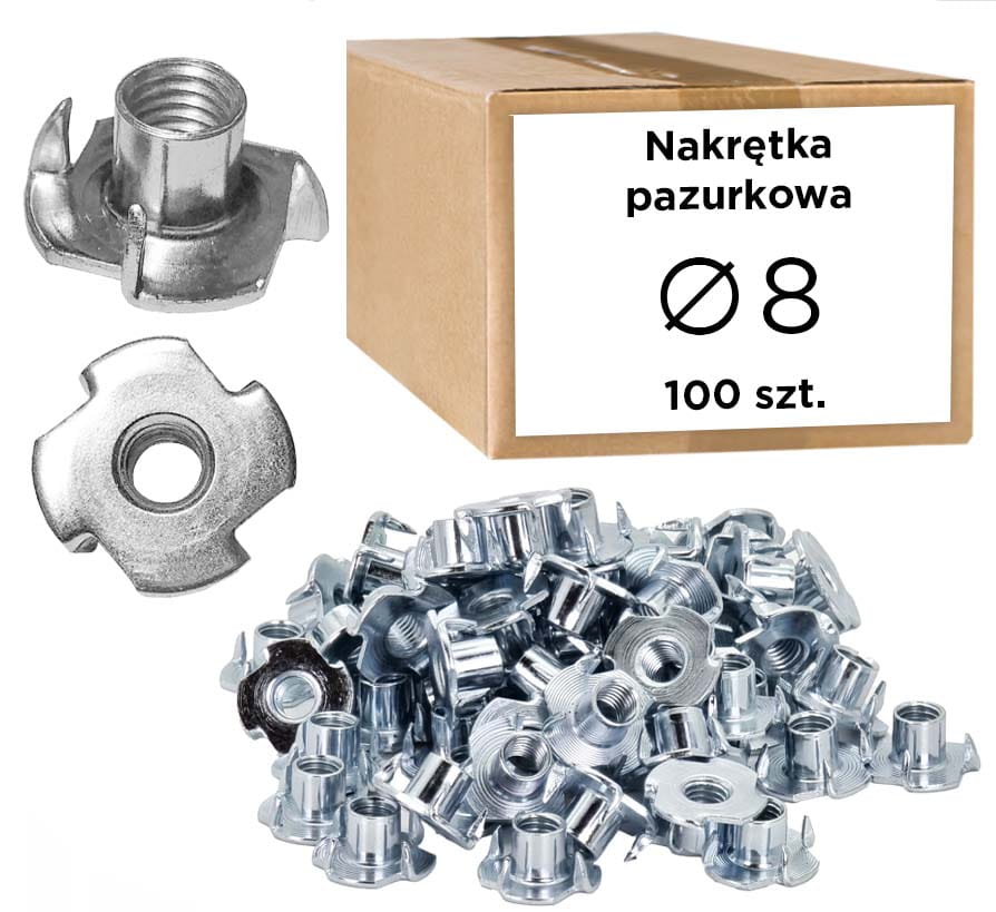 Nakrętka pazurkowa kłowa kotwa wbijana do drewna Ocynk, M8, 100 szt.