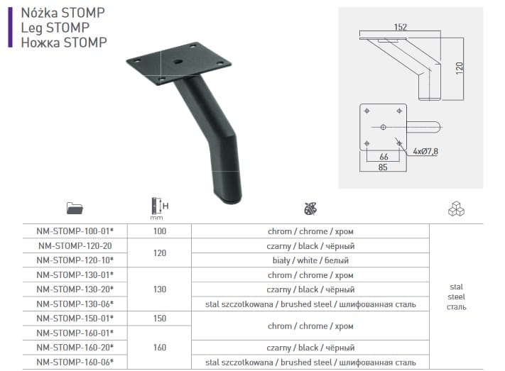 Noga meblowa , chrom połysk, 120 mm