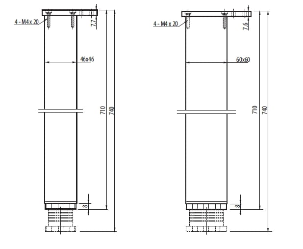 Noga meblowa stołów i blatów. Oferujemy Państwu nogę kwadratową z aluminium z regulacją wysokości. Noga o przekroju 60x60mmx710mm.