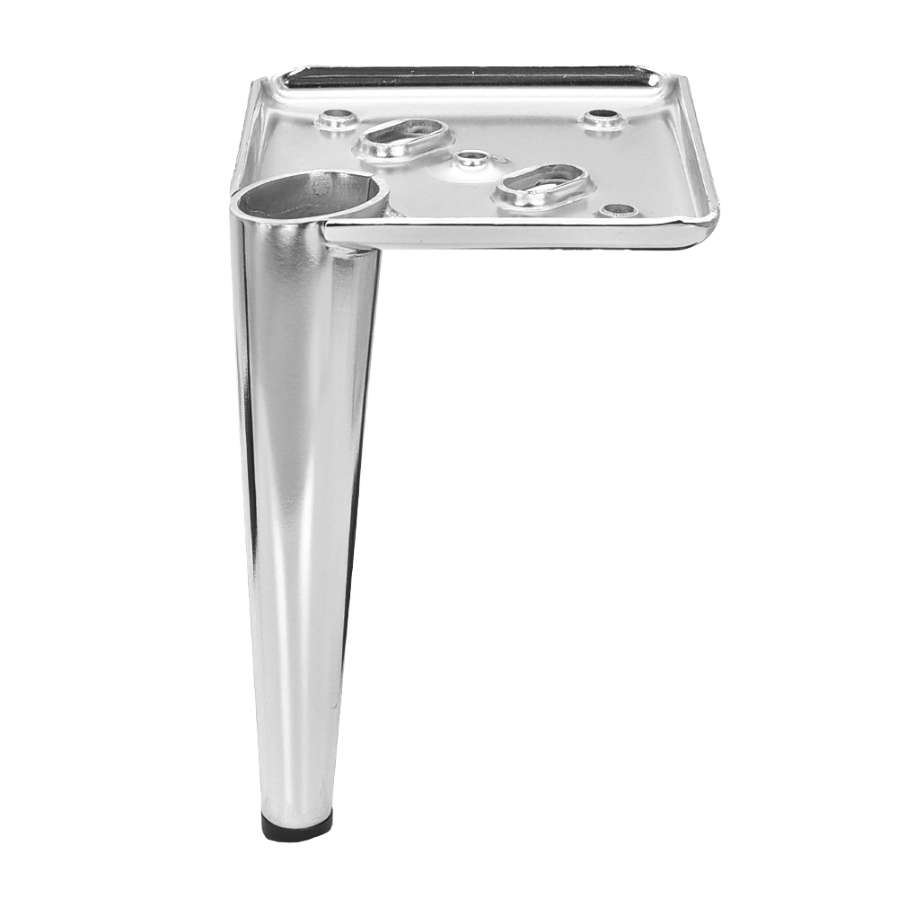 Metalowa noga meblowa o stożkowym kształcie w eleganckim chromowanym kolorze to idealny wybór do nowoczesnych mebli. Zapewnia stabilność i wytrzymałość, doskonale sprawdzając się przy montażu w sofie, fotelu, kanapie lub pufie. Noga meblowa o wysokości 15,2 cm została wyposażona w praktyczną blachę montażową o wymiarach 10x10 cm, co znacznie ułatwia proces instalacji za pomocą wkrętów. Wykonana z solidnego metalu, wyróżnia się nowoczesnym designem i funkcjonalnością, idealnie komponując się z minimalistycznymi oraz industrialnymi wnętrzami.